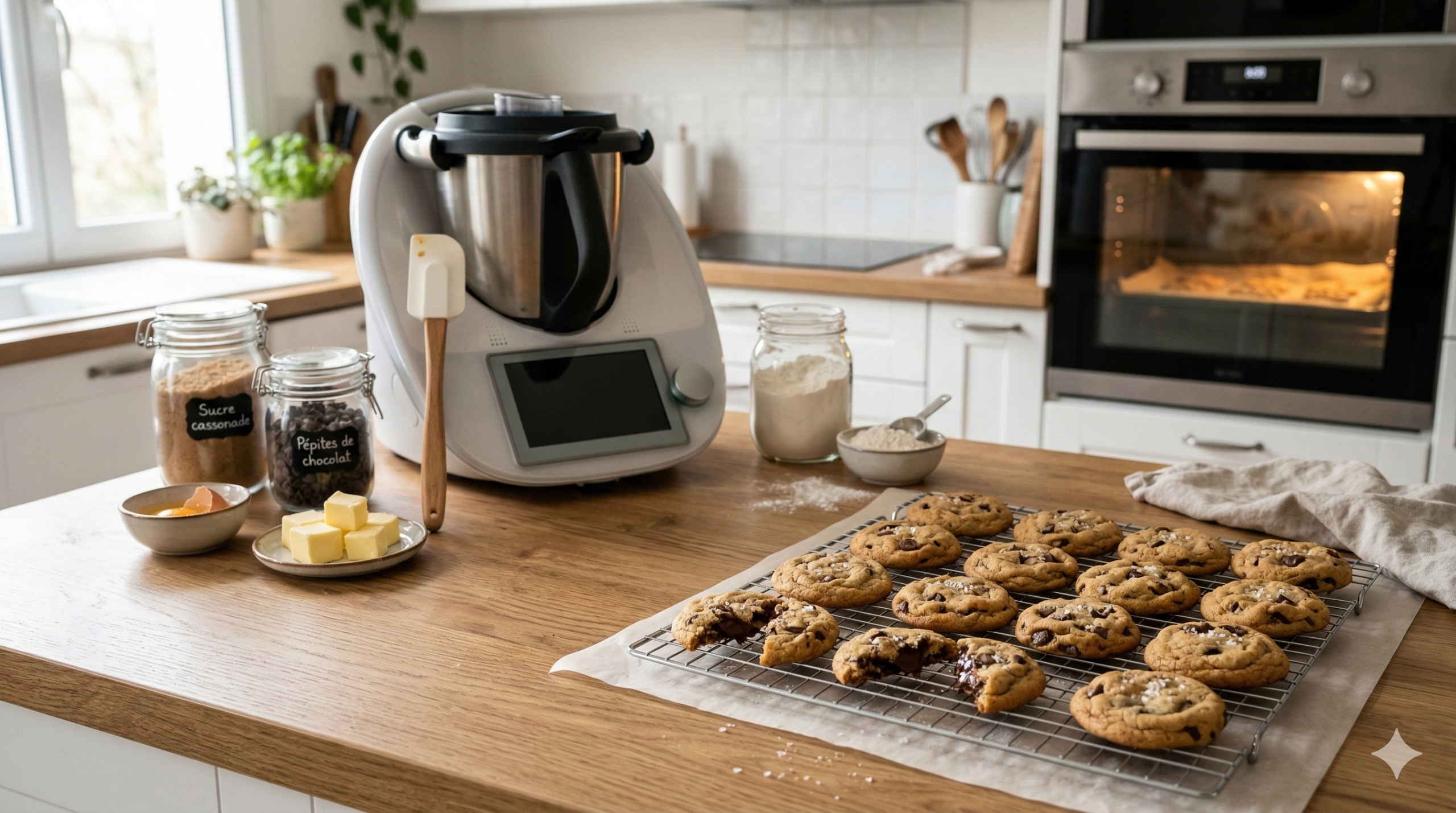 Peut-on doubler les quantités ? Oui, le bol du TM5/TM6/TM7 supporte jusqu’à 2 kg de préparation. Adaptez le temps de cuisson si les cookies sont plus épais.