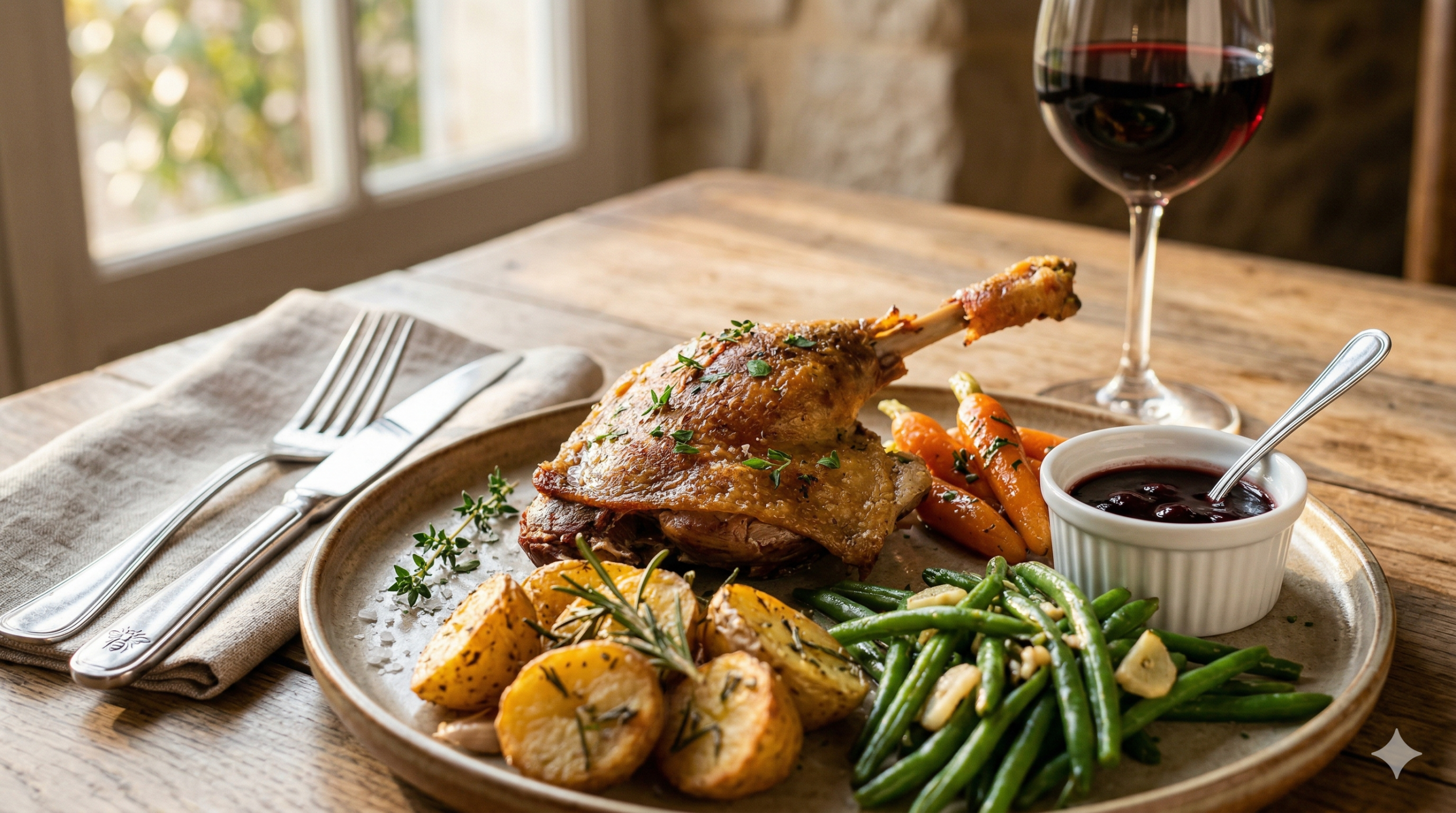 Suggestions de menus complets avec cuisse de canard confite et ses accompagnements
